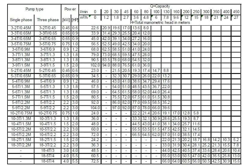 Технічні дані: Продуктивність до 27 м3/год. Висота подачі до 104 м. T.E.F.C. 2 полюсний двигун. Клас ізоляції F. Ступінь захисту IP 55. Робоча напруга: однофазні 220V, 50 Hz, трифазні 380V, 50 Hz. Вбудований конденсатор і автоматичний захист від теплового перевантаження для однофазної версії. Для трьохфазної версії захист від теплового перевантаження повинен забезпечити