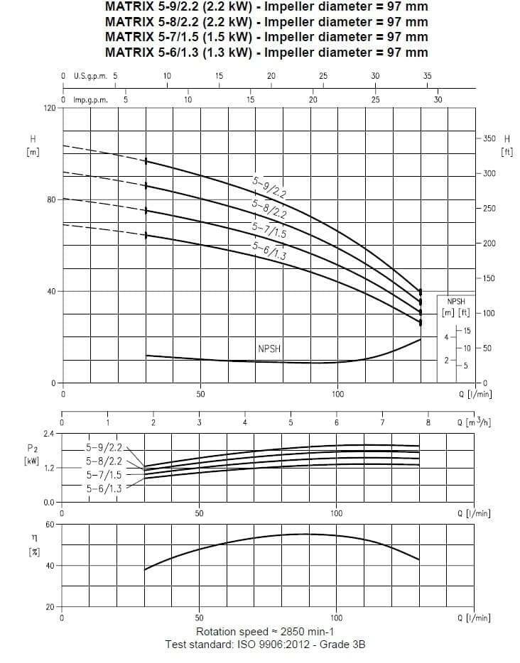 Технічні особливості: Нові насоси MATRIX мають компактну конструкцію і максимальний робочий тиск 1 МПа. Великий ряд моделей, щоб забезпечитит вимоги по продуктивності і висоті подачі. Всі металеві вузли, що контактують з рідиною, виготовлені із нержавіючої сталі AISI 304. Втулки і підшипники, що контактують з рідиною, виготовлені із карбіду вольфраму та кераміки. Кільце -вкладиш із AISI 304 і PTFE.