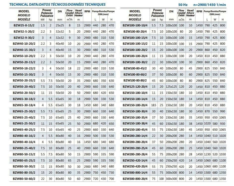 Самовсмоктуючий вибухозахищений насос BZWB. Робоче колесо з двома лопатями, закритого типу, з широкими каналами для чистих і брудних рідин з наявністю домішок. З’єднання насосної частини з двигуном виконано через муфту, що гарантує швидке відновлення роботоздатності насоса при аварійних ситуаціях з електроприводом. Виконання насосної частини з нержавіючої сталі AISI304, доступні для всіх моделей. Високий електричний і гідравлічний показник ККД. Високий показник самовсмоктування без застосування зворотного клапана (4,5 - 6,0 м.вод.ст). Можливість самовсмокутвання реалізована за рахунок наявності в корпусі насоса камери попереднього заливу.