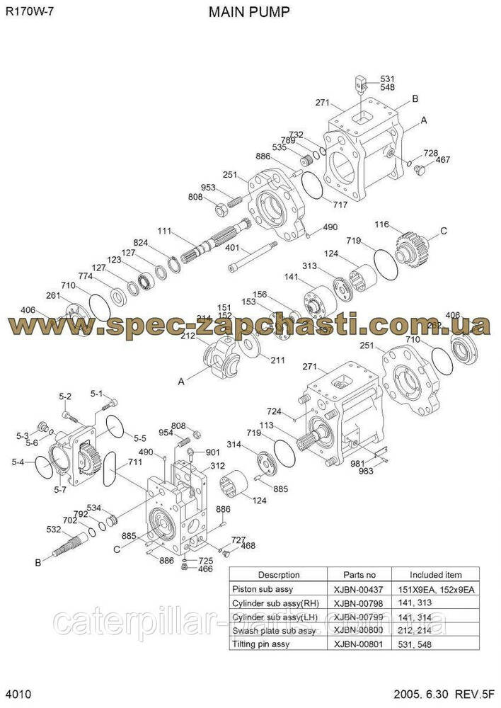 У нас на складі є всі елементи гідронасосу Хюндай 140, 170. Ідравлічний насос 31N515011 аксіально-плунжерний (аксіально-поршневий) з регульованим обсягом подачі. Регулювання відбувається з допомогою зміни величини ходу плунжерів. Для приводу насоса використовують шліцевий вал на 12 шліців. Ремонт гідронасосу ми проводимо у Києві. Також у нас можна виконати діагностику та ремонт усієї гідросистеми екскаватора. У нас можна купити будь-які запчастини до екскаваторів Hyundai Robex. На вибір можуть бути оригінальні запчастини. Комплексний підхід закритого циклу, час до 24 годин.