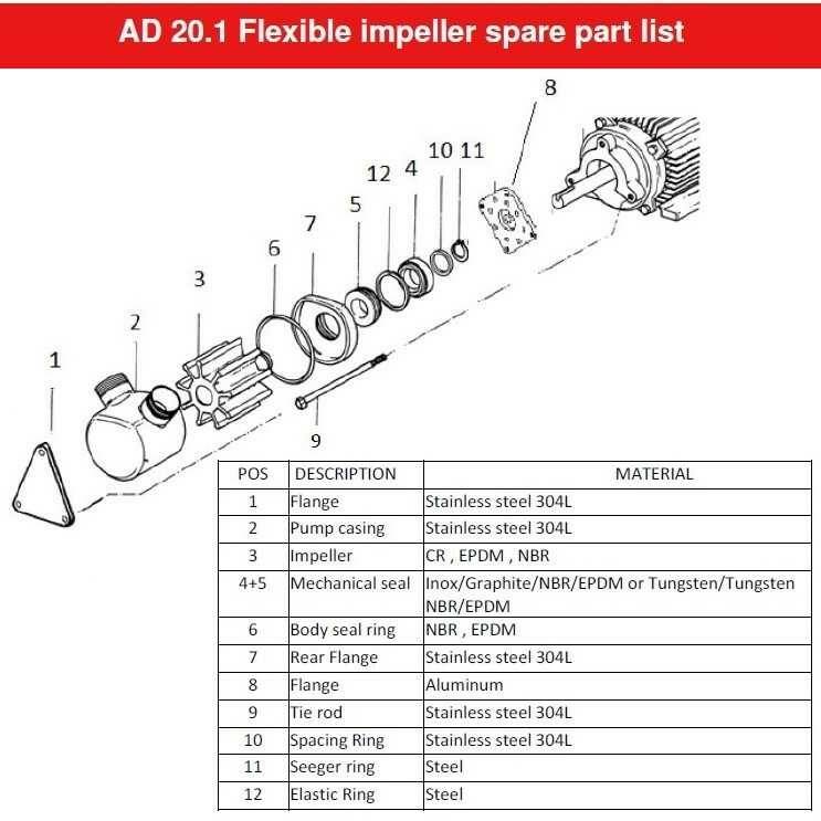 - гнучка крильчатка повністю виконана з нетоксичних матеріалів (неопрен, NBR, EPDM) і стійка до різних хімічно активних сполук;