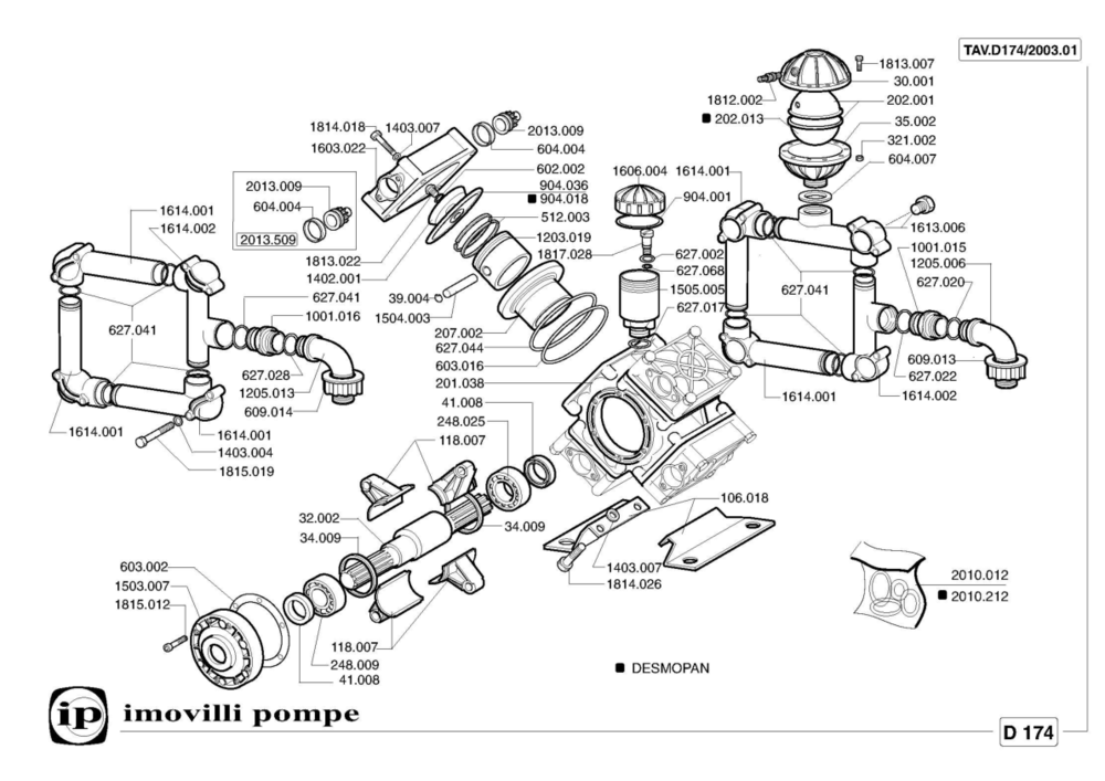 Всі запасні частини до моделей D 82, 133, 163, 174, 203, 243, 274, 406 насосів є постійно на складі.