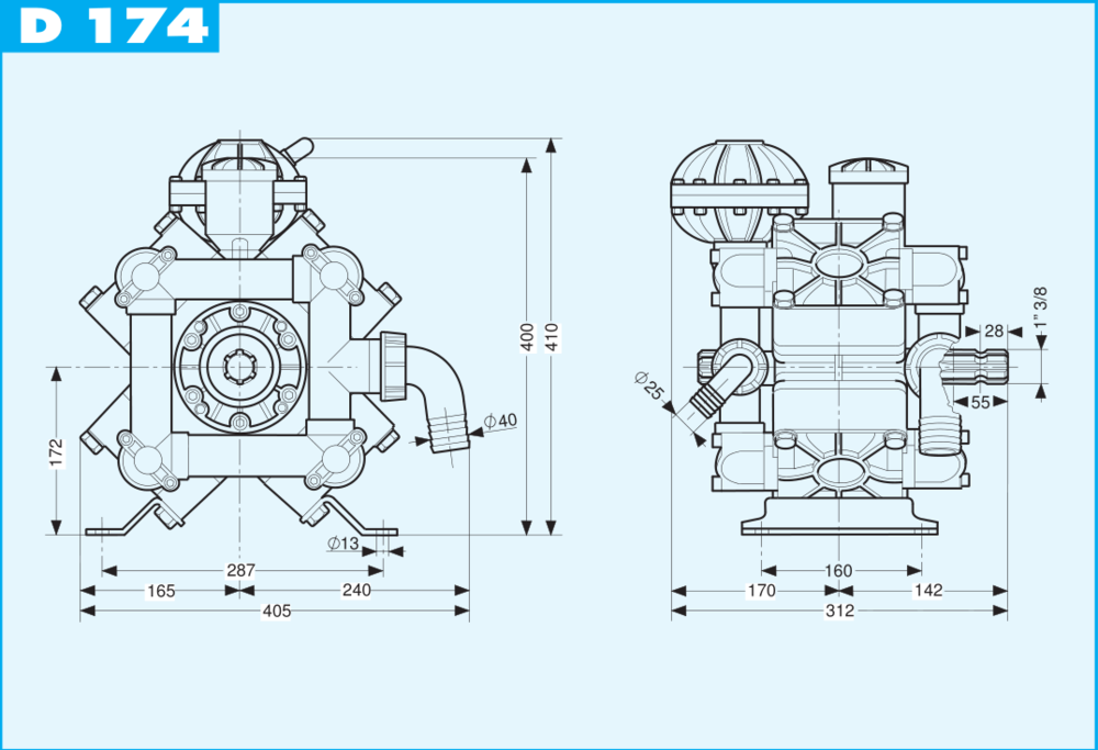 Насос D - 174 встановлюється на штангові обприскувачі з шириною захвата від 16 до 21 м