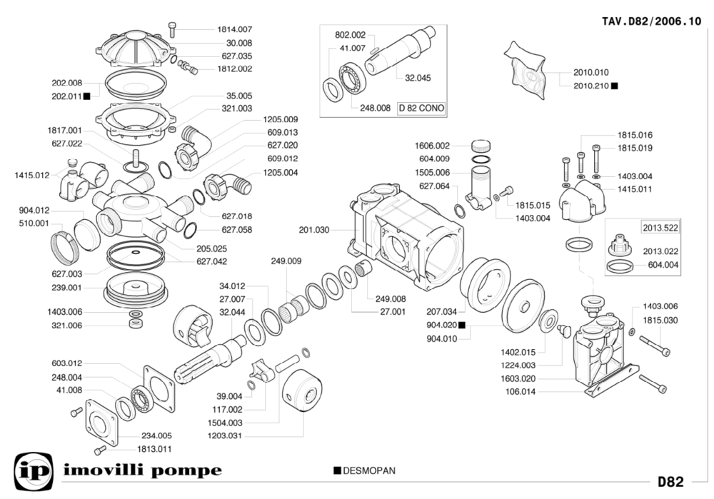 Всі запасні частини до моделей D 82, 133, 163, 174, 203, 243, 406 насосів є постійно на складі.