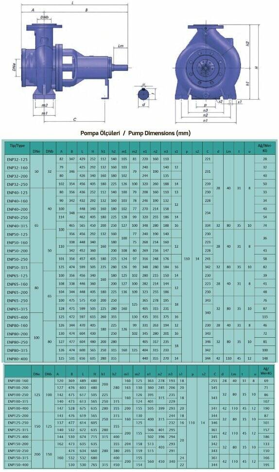 Консольний одноступінчатий насос серії ENP від турецького виробника EMSE. Особливість насосу: можливість заміни тіл обертання (вал, робоче колесо, торцеве ущільнення) без відєднання трубопроводів для зменшення часу простою обладнання. Всі компоненти насосної частини взаємозамінні, що значно спрощує процес підбору запчастин. Застосовується для перекачування рідин з температурою до +120 ºC і вязкістю до 1200 кг/м.куб.