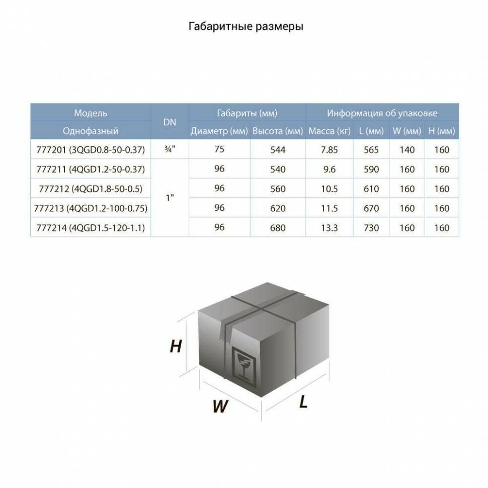 Насос шнековий свердловинний 0.5кВт H 107(34)м Q 40(30)л/хв Ø96мм (нерж) AQUATICA (DONGYIN) (777212) Насоси серії резервуарів (обов'язкова установка кожуха охолодження), для перекачування води в резервуари, для зрошувальних систем, для автоматичної подачі води разом із невеликими резервуарами під час використання керуючої автоматики (керуючі реле, контролери тиску). Насосна частина: - зовнішній діаметр: 96 мм; - корпус насосної частини: нержавіюча сталь AISI 304; - Вихідний фланець: нержавіюча сталь AISI 304; - Вал насосної частини: нержавіюча сталь AISI 304; - Шнек: нержавіюча сталь AISI 304; - втулка шнека: гумово-металева; - Зворотний клапан: гума. Електродвигун: - Тип двигуна: асинхронний, маслонаповнений, з вбудованим в обмотку термозахистом; - обмотка статора: мідь; - Корпус електродвигуна: нержавіюча сталь AISI 304; - Вал двигать