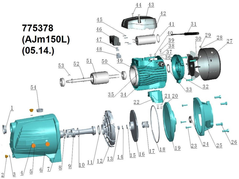 Насос відцентровий самовсмоктуючий 1.5кВт Hmax 54м Qmax 140л/хв LEO 3.0 AJm150L (775378)