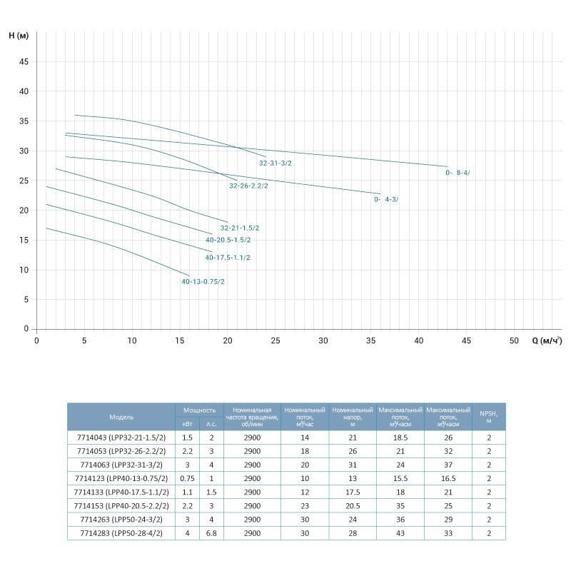 Рядний електронасос при споживаної номінальної потужності 750Вт здатний створювати максимальний напір - 17м і максимальну продуктивність - 275 л / хв, що відповідає - 16,5 кубічних метрів на годину.