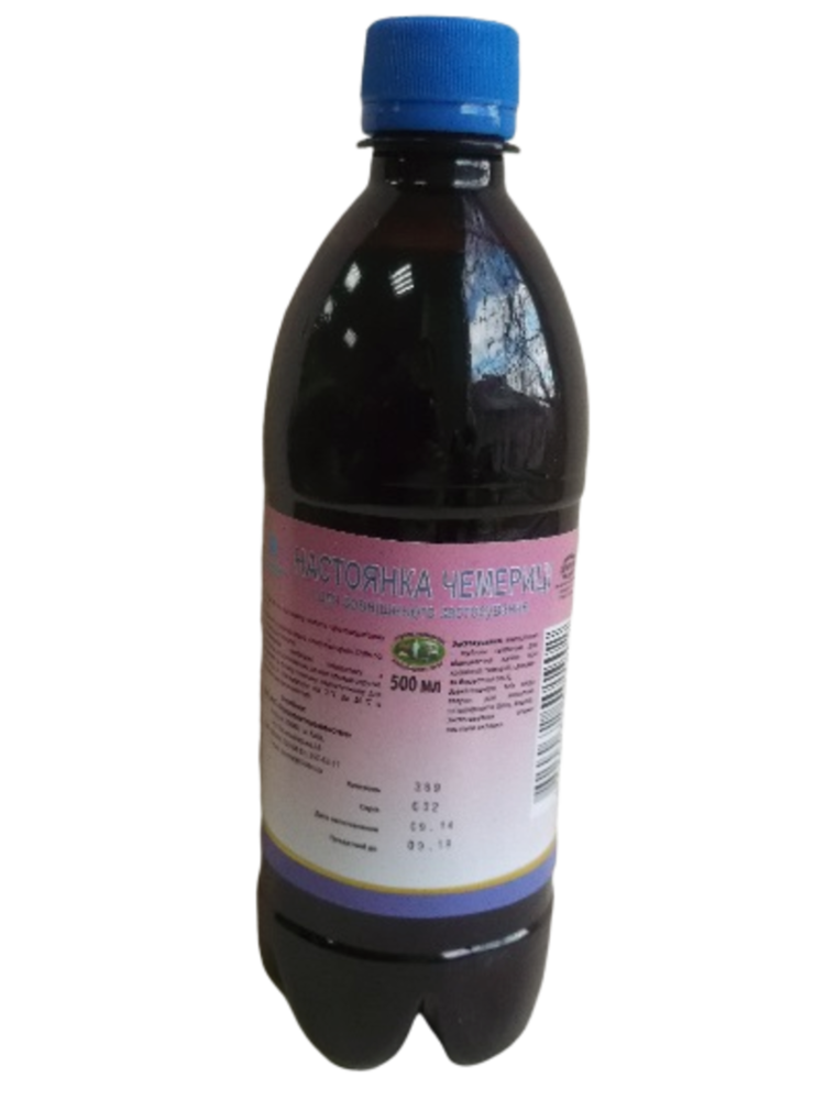 Настойку чемериці (Tinctura Veratrum) отримують шляхом екстрагування коренів із кореневищами чемериці Лобеля розчином 70% об. етилового спирту (1:10). Препарат містить алкалоїди (протовератрин, нірвін та ін.), смоли, дубильні речовини, цукри, крохмаль. При зовнішньому застосуванні препарат має ектоцидний ефект щодо збудників нашкірних ентомозів у стадії личинка-імаго (вошей, волосоїдів).
