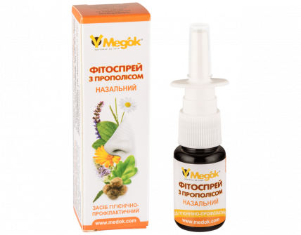 Прополіс (бджолиний клей) – це смолиста речовина з бактерицидними властивостями, яку бджоли збирають із бруньок дерев, переробляють та використовують у вулику як будівельний та дезінфікуючий матеріал. Має виражену ранозагоювальну, знеболювальну, протизапальну, дезодоруючу, фунгіцидну, антисептичну (протибактеріальну, противірусну та протигрибкову) дію. Стимулює регенерацію тканин. Прополіс є натуральним продуктом природного походження з науково доведеним потужним антисептичним ефектом. М'ята має місцеву анестезуючу, антисептичну, в'яжучу дію, зменшує подразнення, освіжає порожнину носа. Ромашка має антисептичну, протизапальну, знеболювальну, кровоспинну дію. Дуб має в'яжучу, протизапальну, антисептичну, обволікаючу, репаративну і кровоспинну дію. Шавлія має антисептичну, протизапальну, протигнильну, а також в'яжучу дію. Подорожник має бактеріостатичну, антисептичну, протизапальну, ранозагоювальну, спазмолітичну та кровоспинну дію. Звіробій має в'яжучу, кровоспинну, протизапальну, знеболювальну, антисептичну, ранозагоювальну дію, сприяє регенерації тканин. Нігтики мають бактерицидну, протизапальну, епітелізуючу та регенеруючу дію. Кропива підвищує регенерацію слизових оболонок порожнини носа, має кровоспинну, в'яжучу, протизапальну дію. Сосна має пом'якшувальну, протимікробну, дезінфікуючу і кровоочисну дію. Чистотіл виявляє антимікробну, протизапальну, знеболювальну, спазмолітичну, фунгістатичну, бактеріостатичну, протипухлинну та антигістамінну дію, зменшує набряки тканин, зміцнює стінки судин, затримує ріст злоякісних пухлин, знімає подразнення, зміцнює подразнення /> Унікальна рецептура фітоспрею поєднує прополіс і велику кількість активних фітокомпонентів, що зумовлює його безпеку та високу ефективність. Фітоспрей з прополісом назальний – це дієвий натуральний засіб для гігієни носа, профілактики простудних та інфекційних захворювань.
