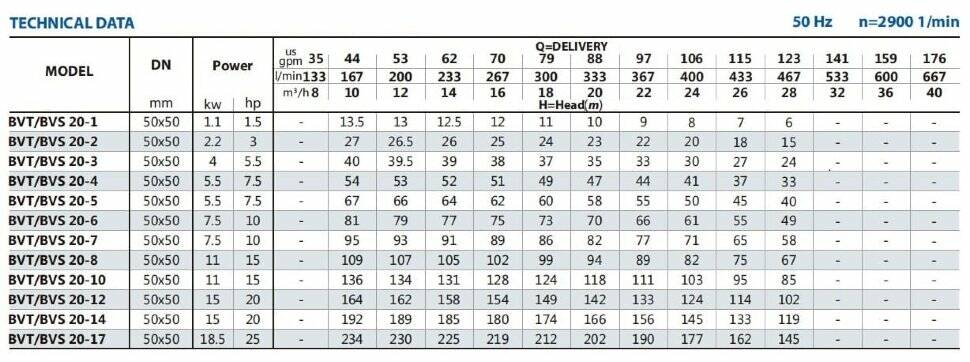 Багатоступінчасті насоси BVS з нержавіючої сталі AISI 304 підходять для систем промислової обробки, систем мийки та очищення, перекачування кислот і лугів, фільтрації, підвищення тиску, очищення води, кондиціонування, зрошення, систем протипожежного захисту.