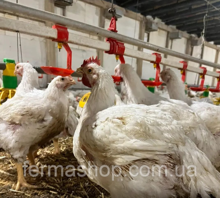 Трубу с ниппельными поилками установить на высоте, чтобы птица тянулась к поилке вверх.