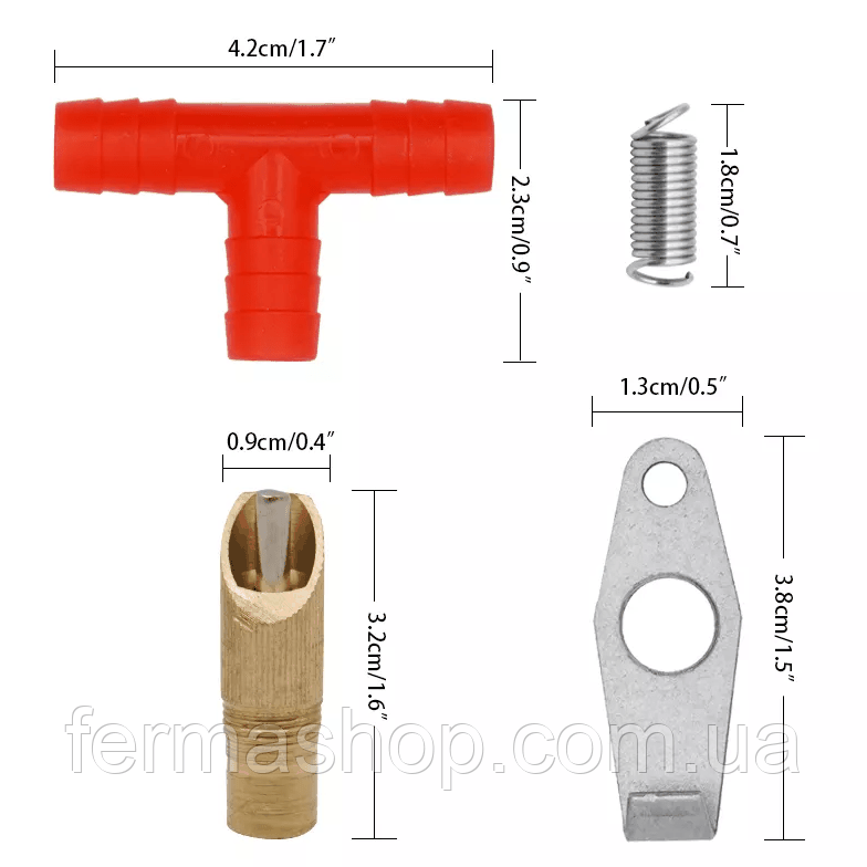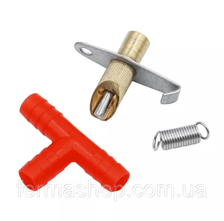 Комплектация:- Ниппельная поилка- Пружина- Тройник (пластиковый)