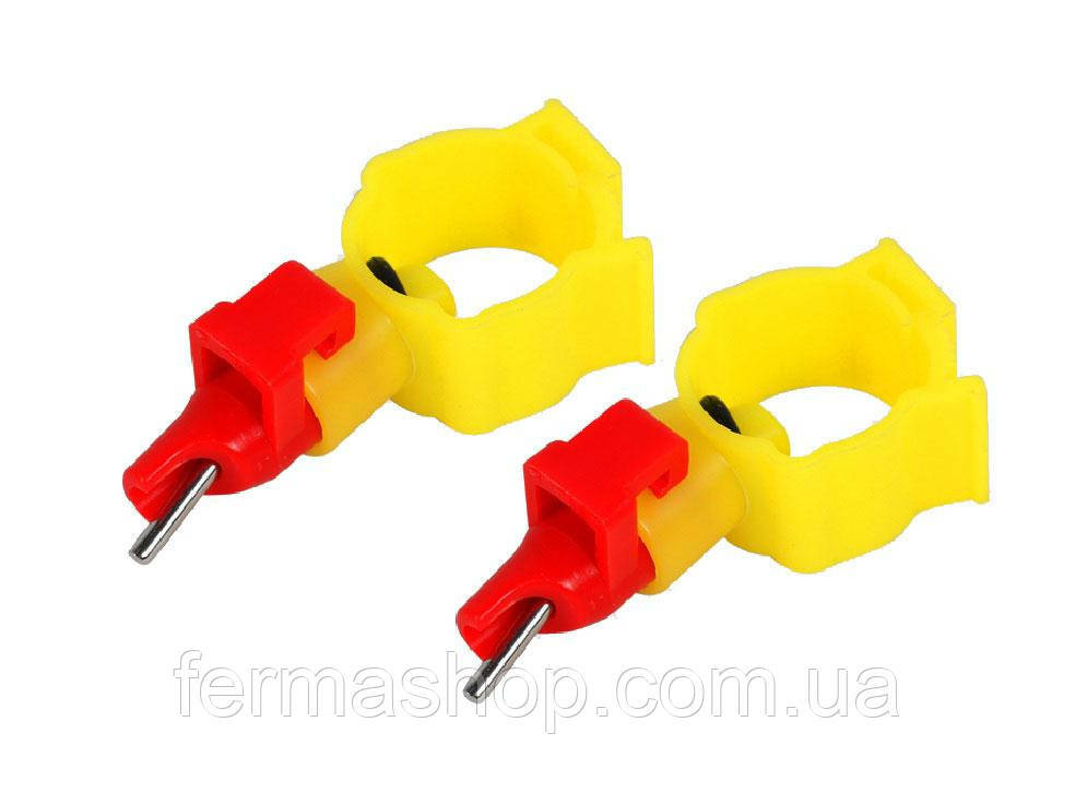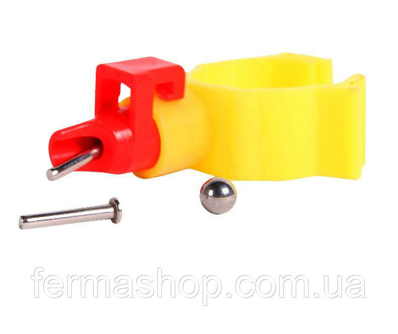 Установить поилку в отверстия и при помощи защелкивания крепежного механизма соединяется с трубой.