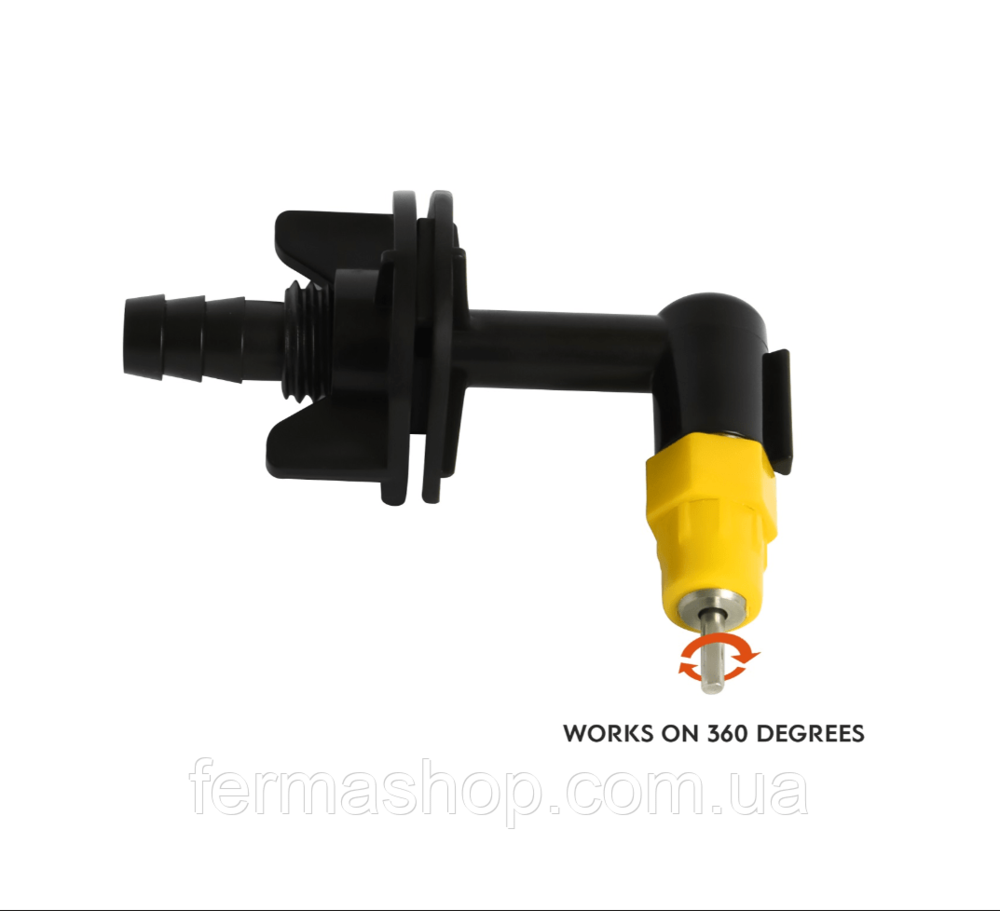 Характеристики: Материал: качественный пластик, устойчивый к УФ-лучам. Поилка 360° Комплект: уголок, поилка, шайба. Этот удлинитель легко прикрепить к клетке с помощью гайки.