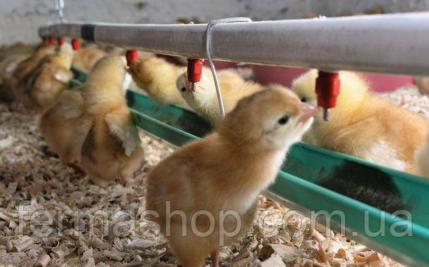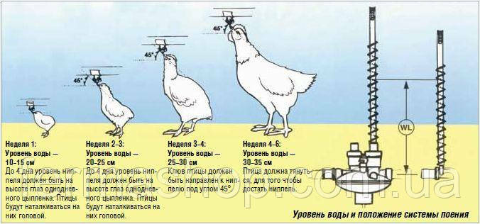 Трубу с ниппельными поилками установить на высоте , чтобы птица тянулась к поилке вверх .