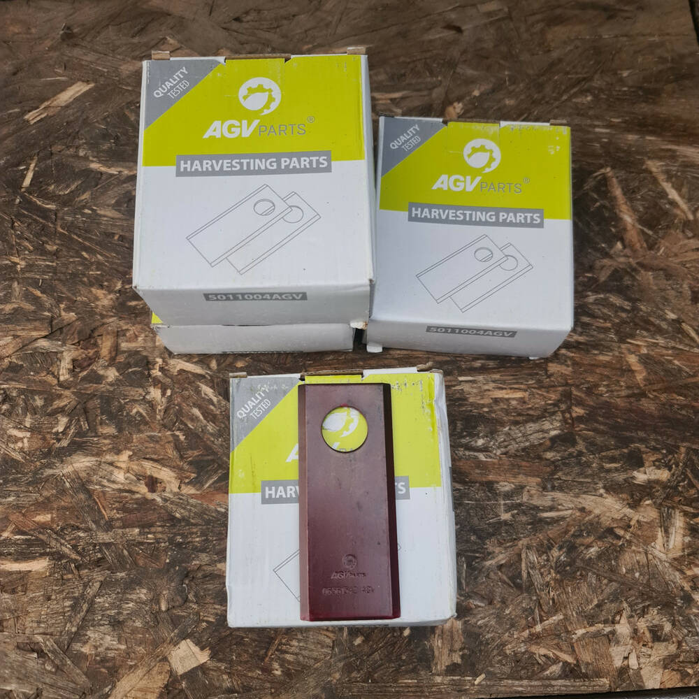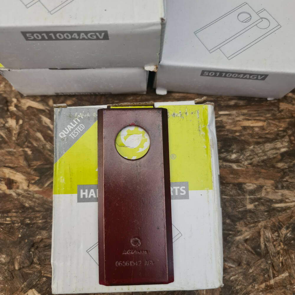Ніж роторної косарки AGV призначений для встановлення на тримач ножів роторних косилок для скошування трав, без порушення агротехнічних вимог. Для однієї тарілки необхідне встановлення 3 ножів. Довжина ножа — 96 мм, ширина — 40 мм, товщина — 3 мм. Діаметр отвору — 19 мм. Ніж виготовлений із високоякісної сталі. Країна-виробник — Німеччина. У пакованні 25 ножів кожен ніж обладнаний клеймом виробника, що підтверджує оригінальність і якість.