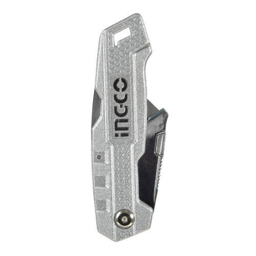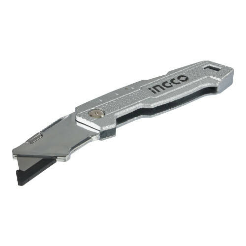 Ніж складаний алюмінієвий, 5 лез трапеція SK5 INGCO — це практичний та надійний інструмент, який стане незамінним у будь-якій роботі, що потребує точного різання. Ідеально підходить для роботи з такими матеріалами, як лінолеум, картон, шпалери та багато інших.
