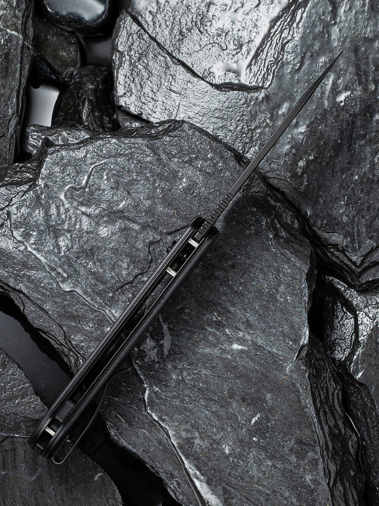 В основі клинка – сталь марки Sandvik 14C28N. Даний матеріал характеризується стійкістю до корозії і легко піддається заточуванню. Це досить міцна сталь. Рукоятка ножа виготовлена із міцного та стійкого до пошкоджень матеріалу G10. Він поєднує в собі скловолокно та синтетичну смолу. Легка текстура чудово лежить у руці та забезпечує достатнє захоплення. Модель має кулькові підшипники. Темне покриття поверхні леза.