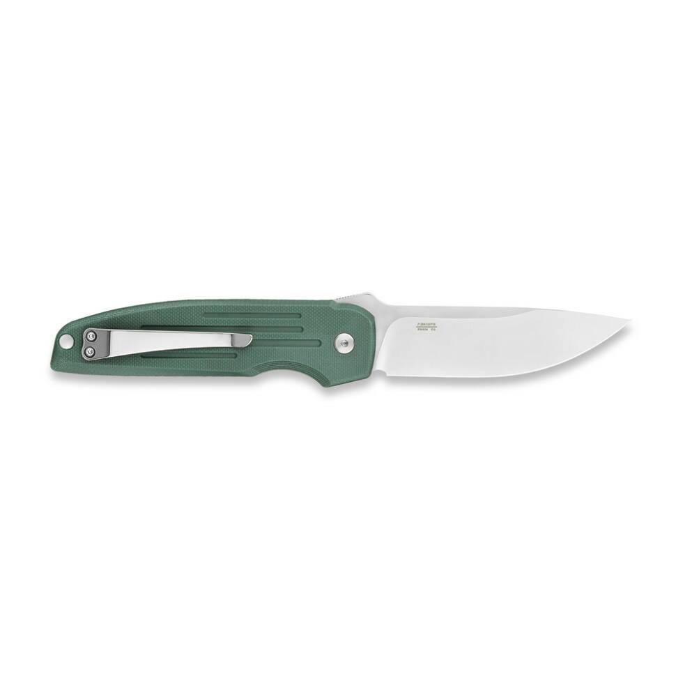 • Склопластикові накладки на руківʼї. Композит G10 відрізняється високою стійкістю до механічного впливу та вологи. Матеріал не тріскається у разі падіння ножа, не деформується під час температурних коливань, а також не вбирає воду та запахи. До того ж текстурована поверхня плашок покращує зчеплення з долонею.