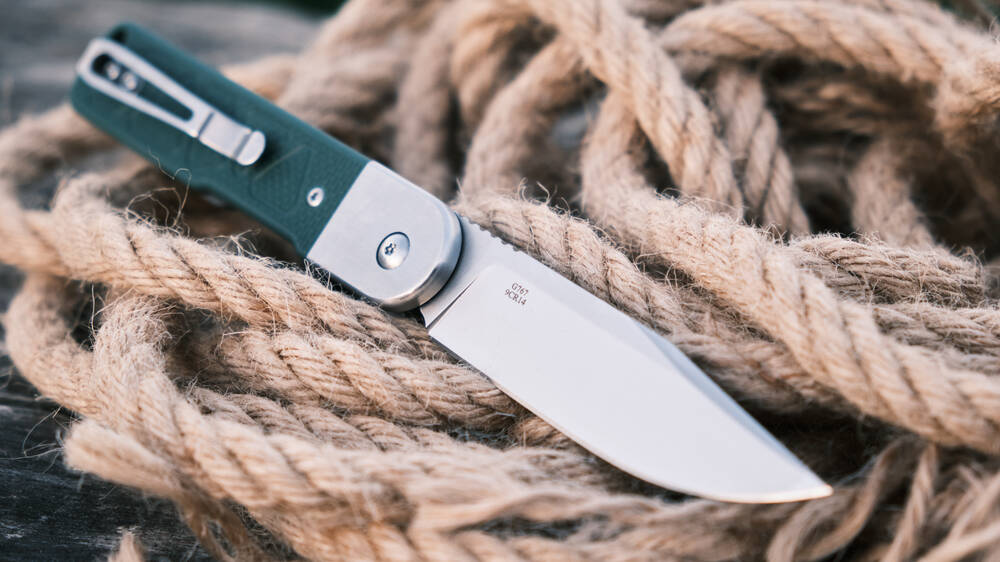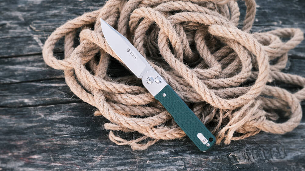 Матеріал клинка — сталь 9CR14, яка рідко зустрічається у складаних інструментах Ganzo. Це нержавіюча марка з високим вмістом хрому та допоміжними легувальними елементами у вигляді молібдену та ванадію, що знижують крихкість та підвищують щільність металу. Твердість сталі дорівнює еталонним 59 HRC, тому клинок ефективно справляється з різанням матеріалів різної щільності.