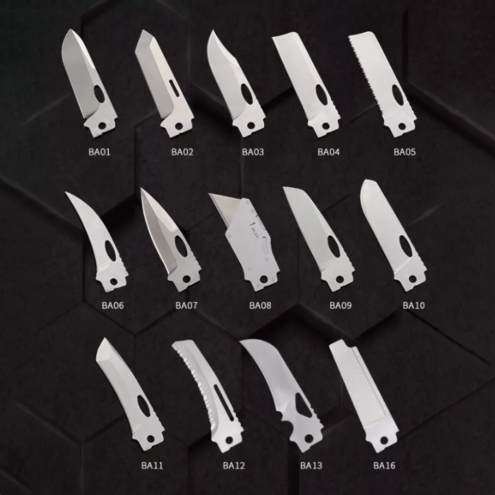Щоб змінити клинок; необхідно при закритому інструменті зсунути в центр два блокіратори; що знаходяться у передній і задній сторонах рукоятки. Ніж розбирається на три складові. Після заміни клинка на інший необхідно зібрати частини конструкції і зафіксувати їх за допомогою блокіраторів; помістивши їх у вихідне положення. У всіх клинках передбачено отвір; що допомагає швидко розкрити інструмент однією рукою.