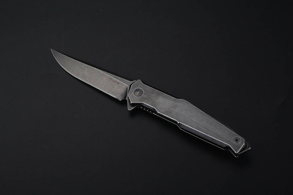 Так, клинок виготовлено з сплаву 14C28N — одного з кращих для кухонних ножів та інших, яким має частий контакт з водою. У нього висока опірність до будь-яких видів корозії, а разом з тим — твердість близько 58-60 HRC, що забезпечує хорошу стійкість заточування. Ріжуча кромка ножа зроблена по всій своїй довжині гладкою. А високу міцність клинку забезпечує і досить велика товщина — 3,1 мм. Крім того, що клинок зроблений чорним, він ще і матовий, що досягнуто шляхом шліфування Stone washed.