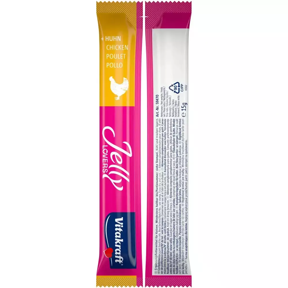 Низькокалорійне желе для котів Вітакрафт Vitakraft Jelly Lovers з куркою та індичкою (2 смаки), 6 шт × 15 г