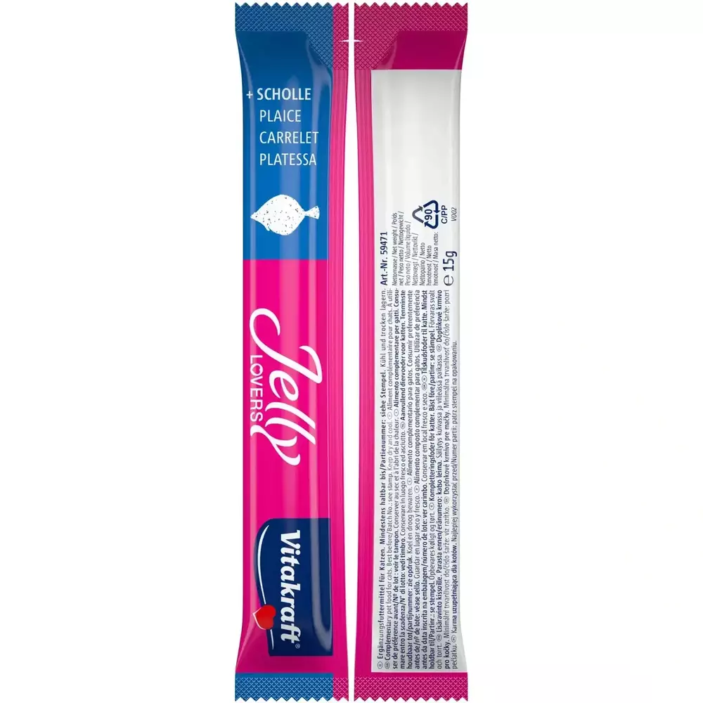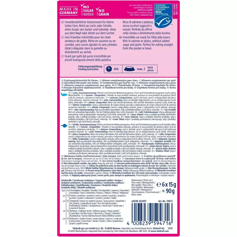 Низькокалорійне желе для котів Вітакрафт Vitakraft Jelly Lovers з лососем та камбалою (2 смаки), 6 шт × 15 г