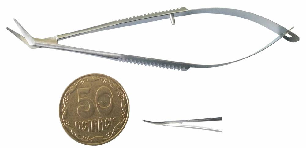 Ножиці для рогівки вигнуті під кутом 90 мм
