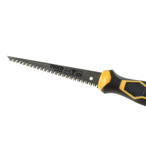 Ножівка INGCO INDUSTRIAL завдовжки 150 мм – це компактний і високоефективний інструмент, призначений для виконання точних і акуратних розпилів гіпсокартону, ПВХ, пластика та дерева. Виготовлена з високоякісної вуглецевої сталі SK5, ножівка забезпечує високу міцність, здатність до тривалої експлуатації та збереження гостроти зубів навіть при інтенсивному використанні. Вона є ідеальним інструментом для майстрів і професіоналів, а також для тих, хто займається ремонтом і монтажем, де точність і швидкість різу є пріоритетними.