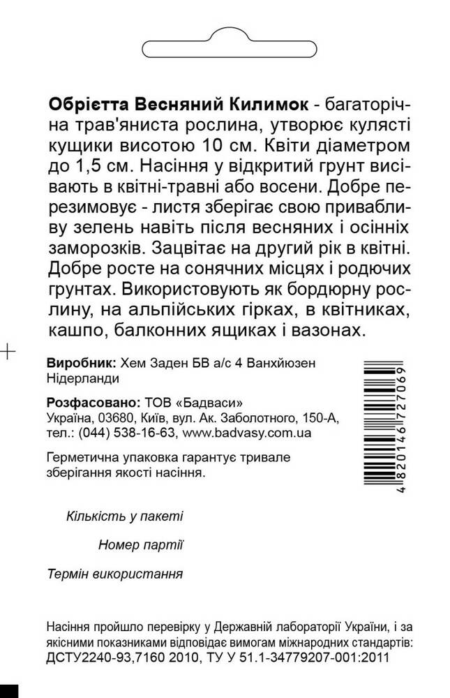 Обрієтта гібридна Весняний Килимок, суміш, 0,1 г, Садиба Центр