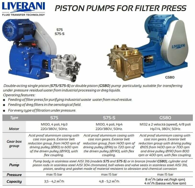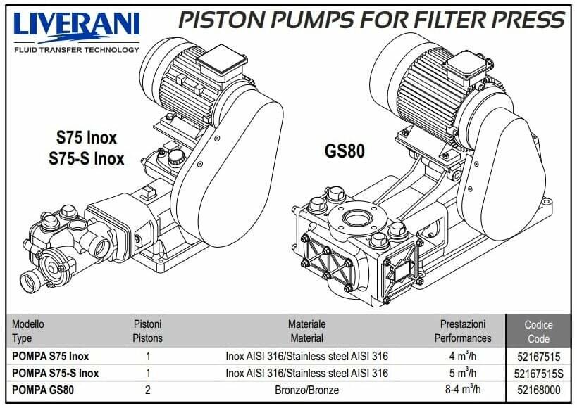 Насос подвійної дії з одним поршнем POMPA S75 Inox особливо придатний для перекачування під тиском залишкової води з промислових процесів або осадових рідин.
