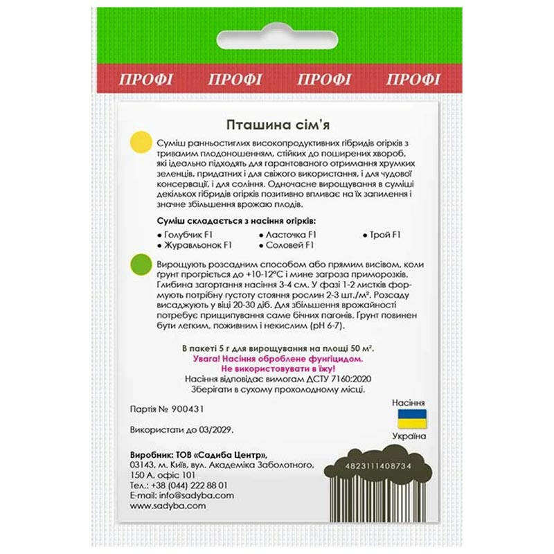 Огірки Пташина сім'я - це суміш ранньостиглих високопродуктивних гібридів, які ідеально підходять для гарантованого отримання хрумких зеленців, придатних і для свіжого використання, і для чудової консервації, і для соління. Одночасне вирощування в суміші декількох гібридів огірків позитивно впливає на їх запилення і значне збільшення врожаю плодів.