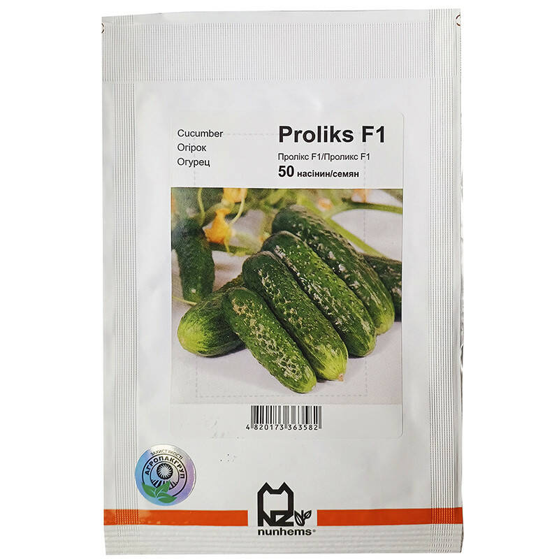 Огірок Пролікс - це середньостиглий високоврожайний гібрид партенокарпічного огірка корнішонного типу з подовженим періодом плодоношення. Від сходів до початку плодоношення 40-42 днів. Призначений для вирощування у відкритому ґрунті і теплицях (як плівкових, так і скляних). Використовується для свіжого ринку, засолки, маринування.