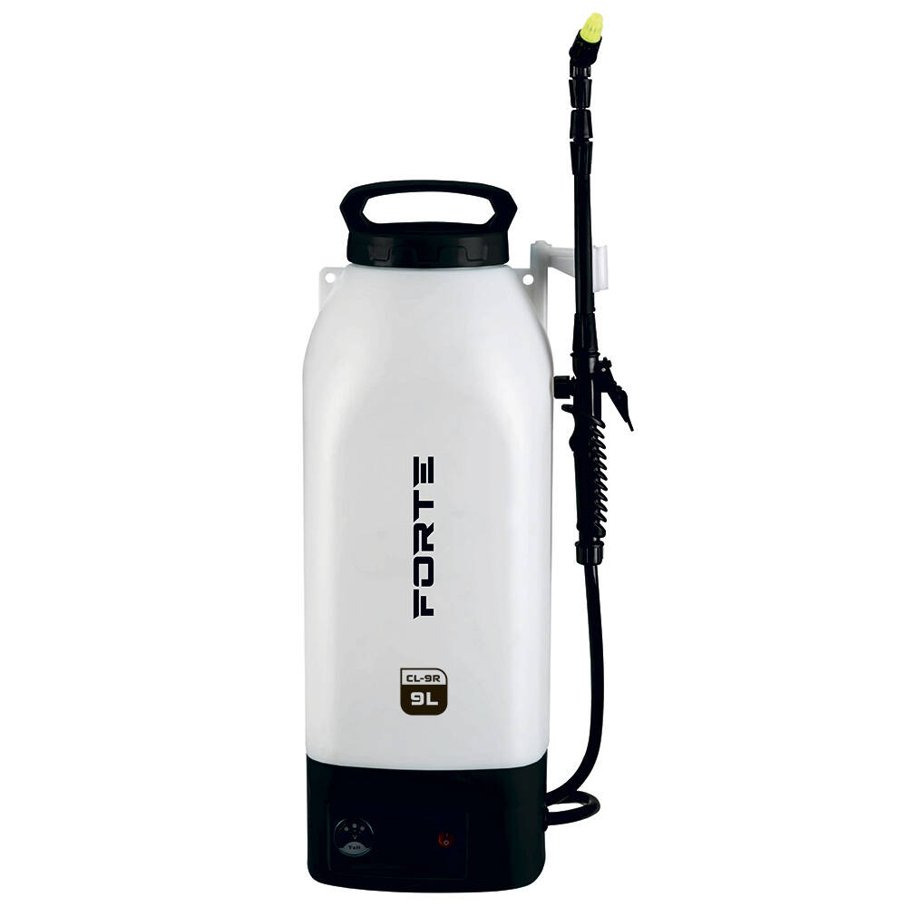 Оприскувач акумуляторний FORTE CL-9R Forte Електричний обприскувач Forte CL-0R  швидко впорається з розпорошенням рідких добрив для обробки ягідних та фруктових культур. Цей обприскувач здатний працювати тривалий час від заряду акумулятора, показуючи при цьому високу продуктивність та дозволяючи розпорошувати препарат у широкому радіусі. Регулювання потужності струменя розпилення дозволить максимально ефективно витрачати розчин для обробки великих площ, так і невеликих необроблених ділянок. До 1.5 годин на одному заряді Автоматична помпа Телескопічна розпилююча трубка з нержавіючої сталі Зарядний пристрій