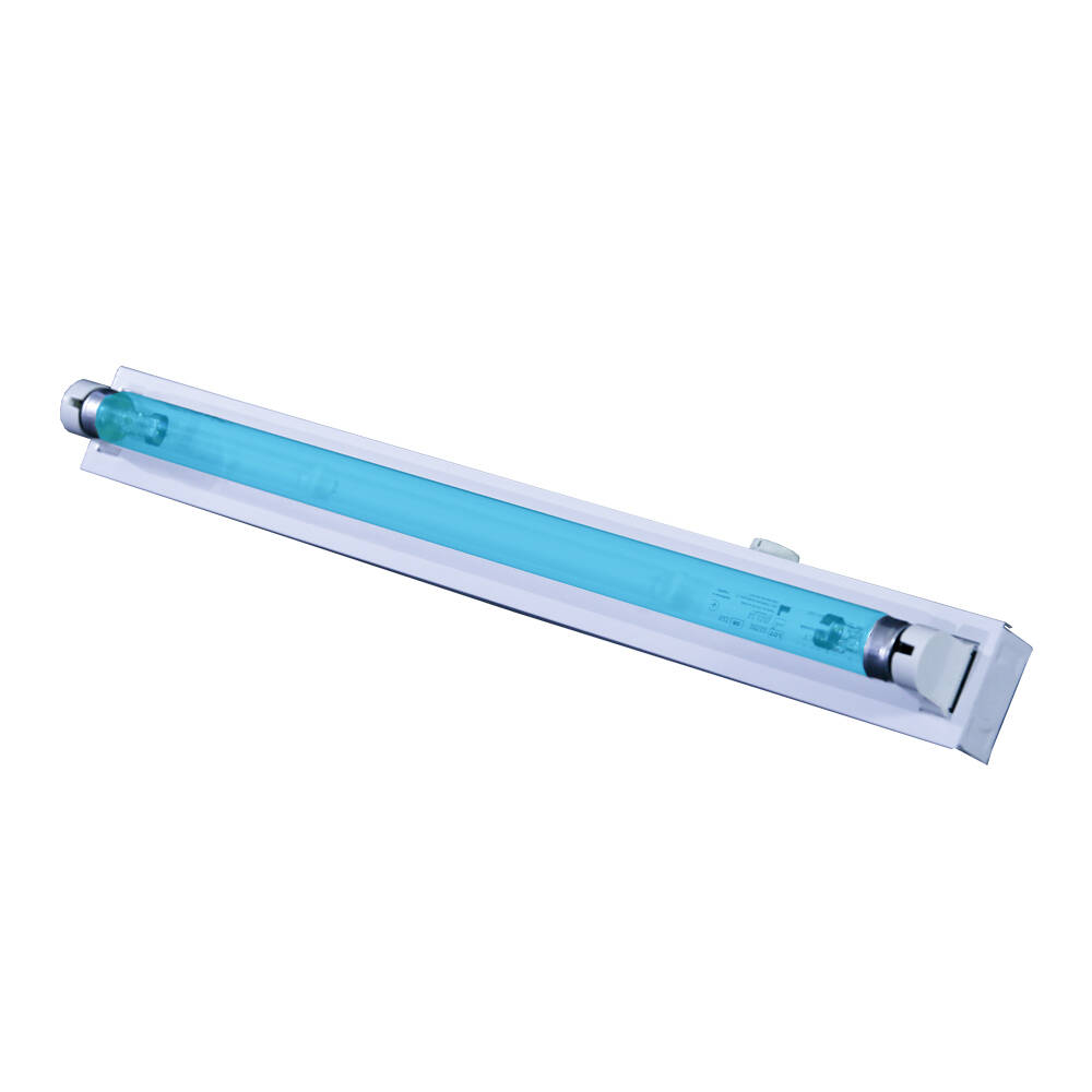 Пристрій обладнаний відкритою бактерицидною лампою TUV 15W, яка випромінює ультрафіолет з довжиною хвилі 253,7 нм. Таке випромінювання ефективно знищує патогенні мікроорганізми у повітрі та на поверхнях, забезпечуючи профілактику поширення інфекцій, що передаються повітряно-крапельним шляхом. За бажанням замовника опромінювач може комплектуватися захисним екраном та шнуром із вилкою.