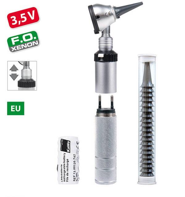 Отоскоп KaWe ЄВРОЛАЙТ F.O.30 | 3,5В з акумулятором, Сріблястий
