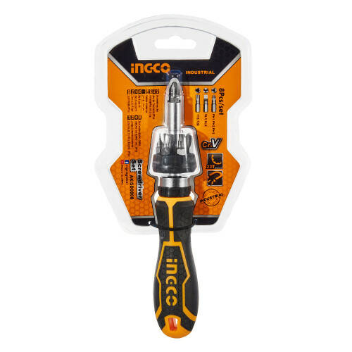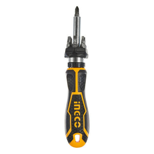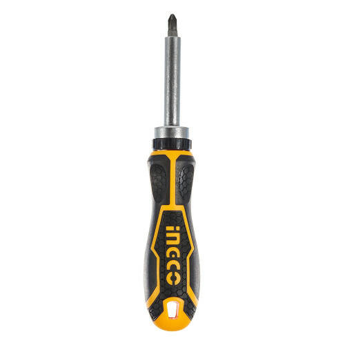 Викрутка з тріскачкою 7 біт INGCO використовується для загвинчування і відгвинчування кріплення з різним профілем.