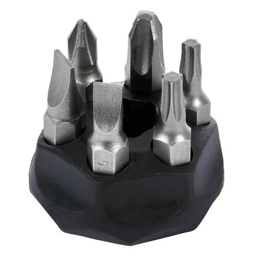 У комплекті з викруткою поставляється 7 біт з плоским, хрестовим і зіркоподібним шліцом (SL5, SL6, PH1, PH2, PH3, Т15, Т20) і змінна ручка високої якості.