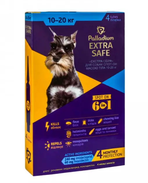Паладіум Каплі інсекто-акар. Екстра Сейф для собак до 10-20кг по 1мл 1піп. (4 в уп.)