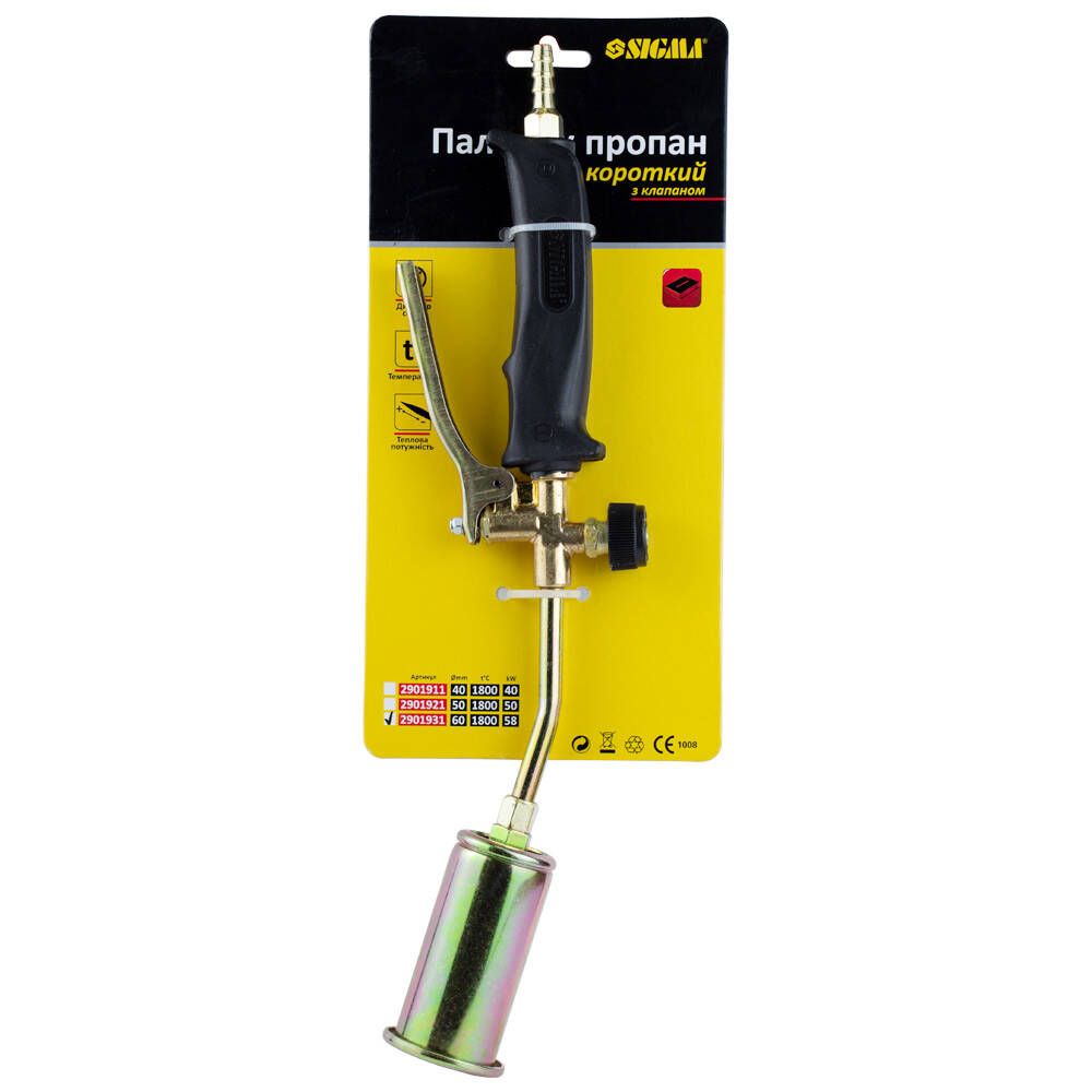 Пальник пропан коротка з клапаном Ø60мм 420мм SIGMA (2901931) застосовується для укладання, просушування, нагріву покрівельних матеріалів, виконання гідроізоляційних робіт і т.п.