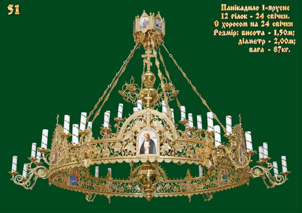 Церковне 1-ярусні панікадило на 12 гілок 24 свічки і з хоросо на 24 свічки - виготовлено з високоякісного сплаву латуні.