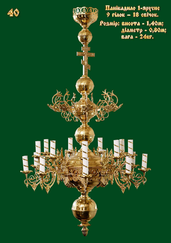 Модель панікадила складається з 1 ярусу та 18 свічок. Прикрашене різноманітними декоруючими елементами.