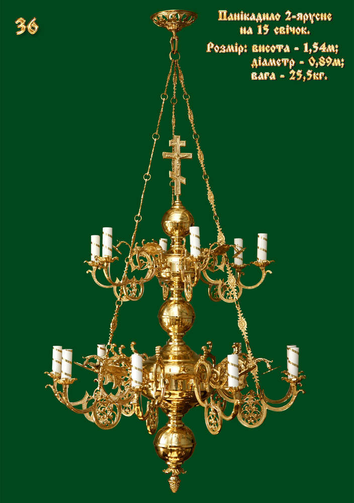 Невелике церковне панікадило, яке складається з двох ярусів і 15 свічок. Завдяки своїм відносно невеликим розмірам і прекрасним тонким естетичним характеристикам може використовуватися як в великих, так і малих церквах.