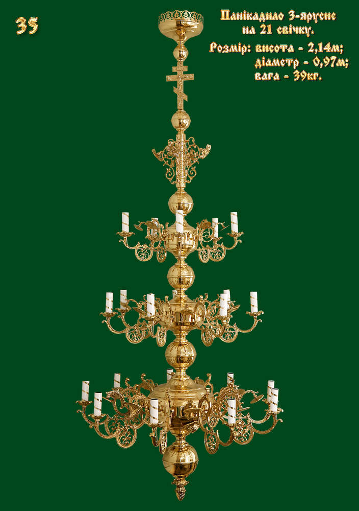 Дана модель панікадила складається з трьох ярусів, на якому розміщена 21 свічка. Кожен ярус прикрашений різноманітними декоруючими елементами, які надають панакаділу неповторності і витонченості.