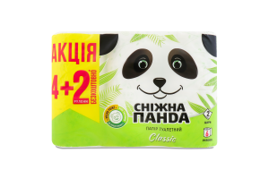 Туалетний папір Сніжна Панда Classic 2 шари 6 рулонів