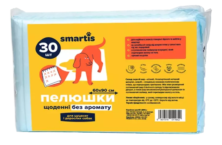 Пелюшки щоденні 60х90см 60г/6г (30шт) Smartis