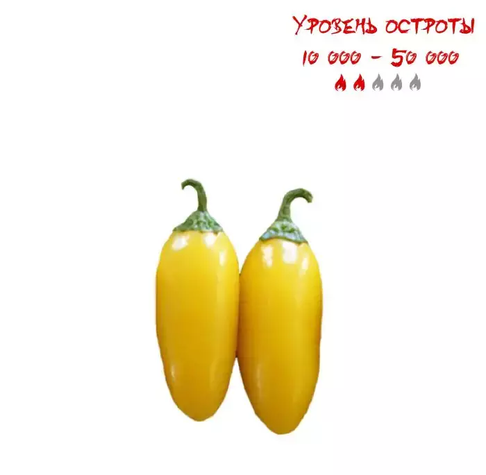 халапеньо, но намного больше тепла. Семена желтого халапеньо легко