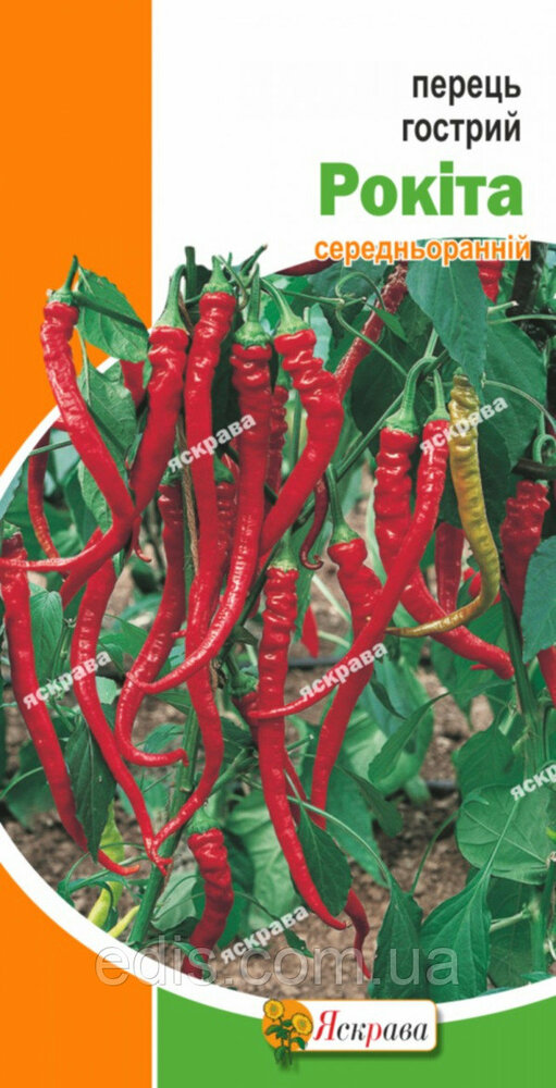 Перець гострий Рокита 0,3 гСередньоранній сорт. Вегетаційний період від сходів до біологічної стиглості 125-135 днів. Кущ напіврозлогий, висотою 35-45 див. Плоди конусоподібні, інтенсивно-червоного кольору, довжиною 4-9 см, масою 10-20 р. М'якуш щільний, тонкий, гострий смак. Використовується для консервації та споживання у свіжому і засушеному вигляді.